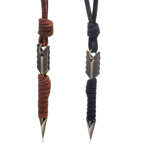 Accesorios de nuevo estilo, collar de cuero personalizado para hombre, collar, colgante de flecha de Metal Vintage, cadena de suéter